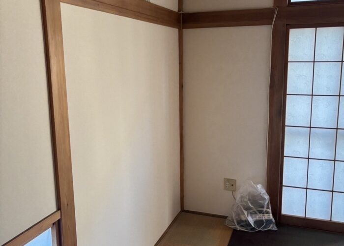 内装リフォーム 2026.01.20 埼玉県所沢市 S様邸 内装|砂壁からクロス仕上げ Before既存は砂壁仕上げで、経年によりポロポロと落ちやすい状態でした。このままクロスを貼るのは難しく、下地からの対応が必要な状況でした。 After砂壁の上から、ベニヤではなくクロス下地用合板を施工。下地を安定させたうえでクロス仕上げとし、将来の剥がれや不具合が出にくい壁にしています。 仕上がりだけでなく、下地の状態も考えた施工です。 この記事は役に立ちましたか? クロス仕上げ内装リフォーム内装工事埼玉県川越市並木 M様邸 外壁塗装(使用塗料:KFケミカル|セミフロンスーパーアクアⅡ)東京都青梅市梅郷 S様邸 バルコニー|下地補強・床張り替え・防水工事