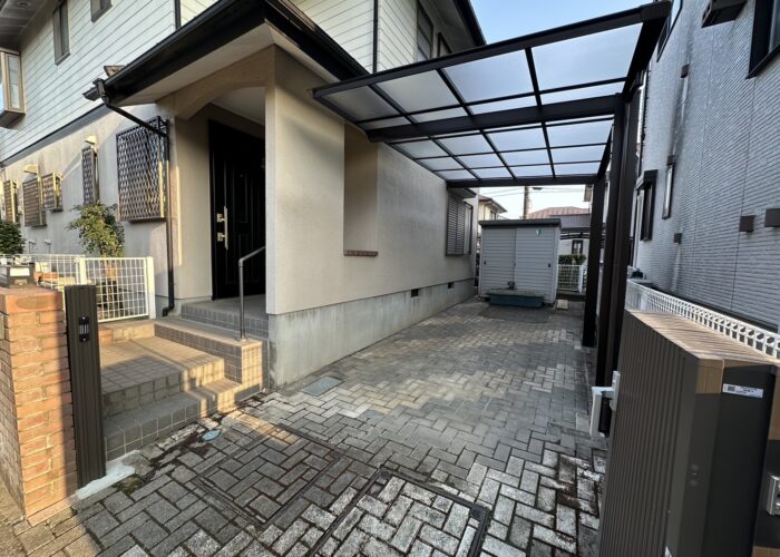 外装リフォーム 2026.03.24 埼玉県入間市 S様邸 カーポート|解体・新設工事 Before既存のカーポートは経年により古くなっており、 新しいものへ交換をご希望されていました。 合わせて、既存のインターロッキング部分も含め、 きれいに納める必要がある状況でした。 After既存カーポートを解体後、 三協アルミのセルフィを新設。 インターロッキングは一度取り外し、 補修跡が出ないよう丁寧に復旧しています。 新しいカーポートと既存部分が自然になじむ、 すっきりとした仕上がりになりました。(使用商品:三協アルミ セルフィ) この記事は役に立ちましたか? 外装リフォーム改修工事新設工事解体工事埼玉県さいたま市 T様 マンション屋上ドア|交換工事
